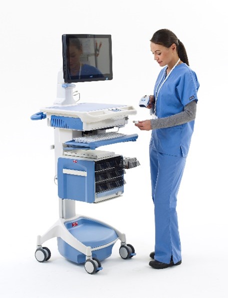 Staff were given the option to comment further at end of questionnaire. It is noted that additional comments by staff ranged from “Excellent Tutorial”, “No different from F2F Training” and “Virtual Training great alternative to F2F Training” to “Video issues” and “Better SVHS IT required”. On one occasion the staff were unable to gain access to the tutorial rooms and connect to the hospitals MS Teams platform, which delayed the training session. It was decided that the Computer on Wheels would be a great alternative to enable easier access for ward teams to be used in smaller groups and provide social distancing due to COVID-19. The Computer on Wheels are mobile workstations that are easy to use at the beside so that consultations are conducted in front of patients and carers. When not in use during peak times of nursing workloads they were able to be accessed by staff to login to MS Teams platform. (Figure 3)