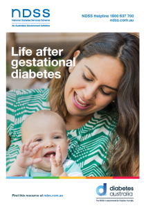 The NDSS booklet Life after gestational diabetes is sent to women on the National Gestational Diabetes Register after their baby is born (10 months after NDSS registration). The booklet provides information on postnatal follow-up and screening, healthy eating, physical activity and planning for future pregnancies. A full review and update of the booklet was completed in 2019 and the updated booklet is available online at: